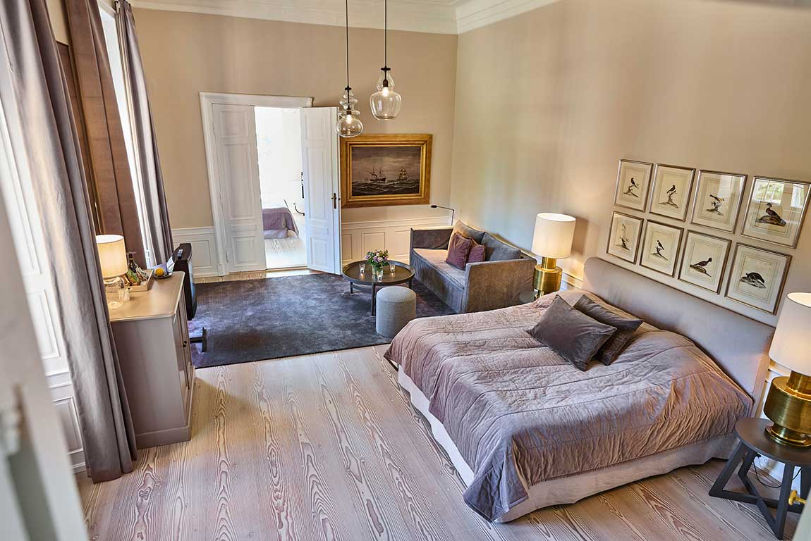 Holckenhavn Slot har 14 dobbeltværelser, 3 minisuiter samt 1 seniorsuite